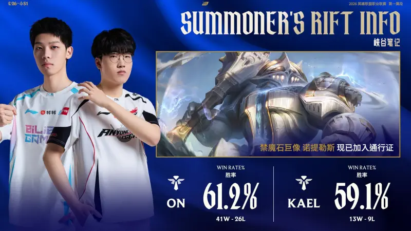 ON胜率为61.2%,Kael胜率为59.1%。